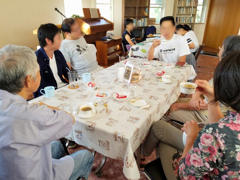 また、「居場所カフェ」を火曜日と木曜日の13:30から開いています。社会や家庭に所在のなさを感じている人たち、ただおしゃべりをしたい人たちに居場所を提供する働きです(新聞にも載ったことがあるので、見たことがある人もいるかも)。